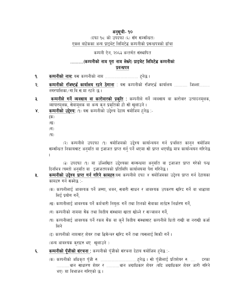 This document is mandatory under the Companies Act, 2063 (2006) and must be submitted to the Office of the Company Registrar (OCR) during the company registration process.